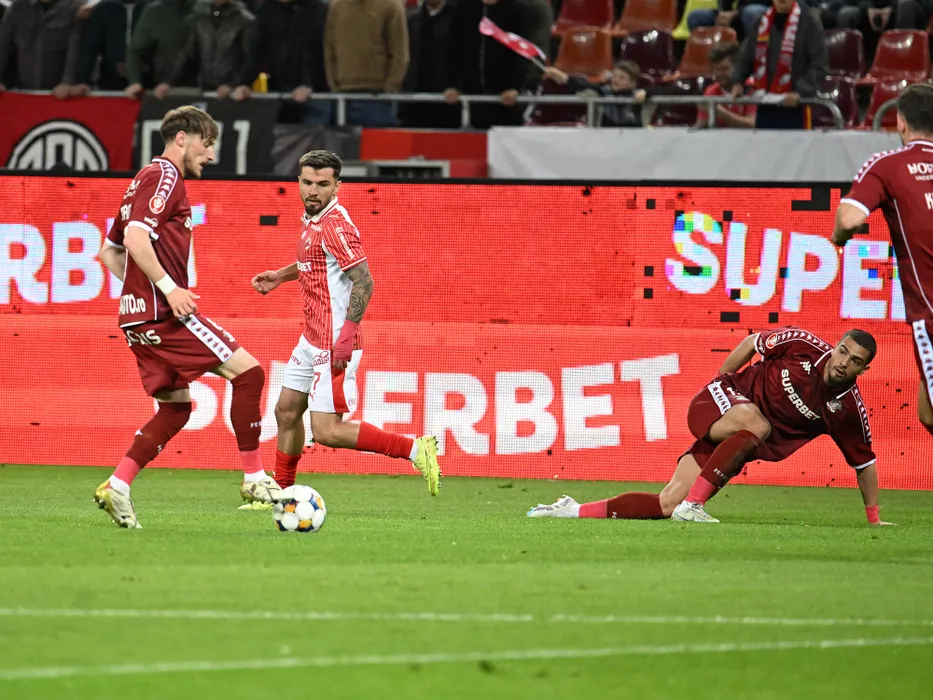 Constantin Grameni, Danniel Charles Armstrong si Denis Ciobotariu in meciul de fotbal dintre Dinamo Bucuresti si Rapid Bucuresti, din cadrul Play off-ului Superligii Superbet, desfasurat pe Arena Nationala din Bucuresti, duminica 26 aprilie 2026. © FOTO:Razvan Pasarica/SPORT PICTURES