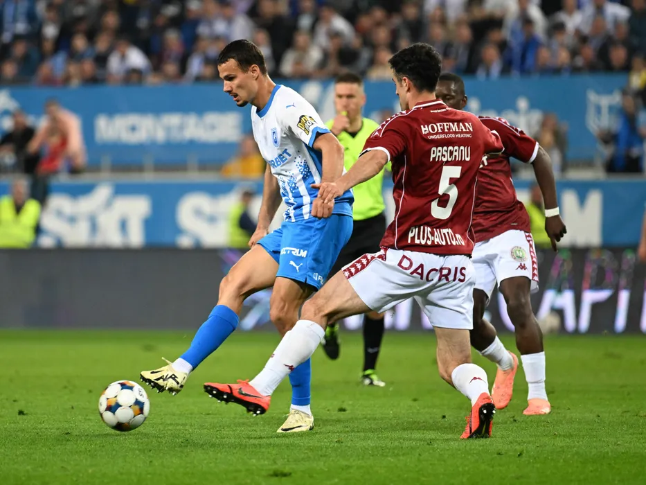 Assad Al Islam Al Hamlawi si Alexandru Stefan Pascanu in meciul dintre Universitatea Craiova si Rapid Bucuresti, contand pentru Play off-ul Superligii Superbet, desfasurat pe Stadionul Ion Oblemenco din Craiova, duminica 19 aprilie 2026. © FOTO:Razvan Pasarica/SPORT PICTURES