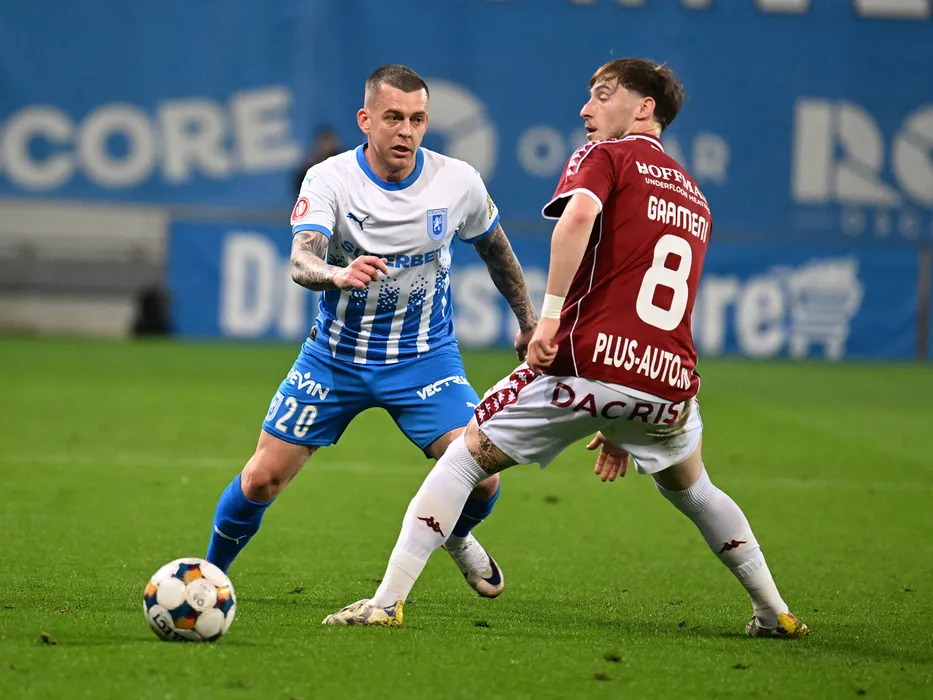 Alexandru Cicaldau si Constantin Grameni in meciul dintre Universitatea Craiova si Rapid Bucuresti, contand pentru Play off-ul Superligii Superbet, desfasurat pe Stadionul Ion Oblemenco din Craiova, duminica 19 aprilie 2026. © FOTO:Razvan Pasarica/SPORT PICTURES