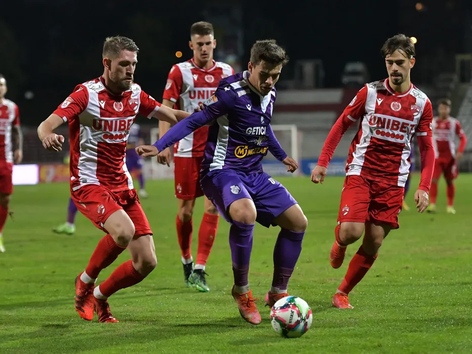 Marco Ehmann, Nicolae Constantin Musat si Andrei Radu in meciul de fotbal dintre Dinamo Bucuresti si FC Arges, contand pentru Cupa Romaniei, desfasurat pe Stadionul Dinamo din Bucuresti, marti 26 octombrie 2021. © FOTO:Razvan Pasarica/SPORT PICTURES