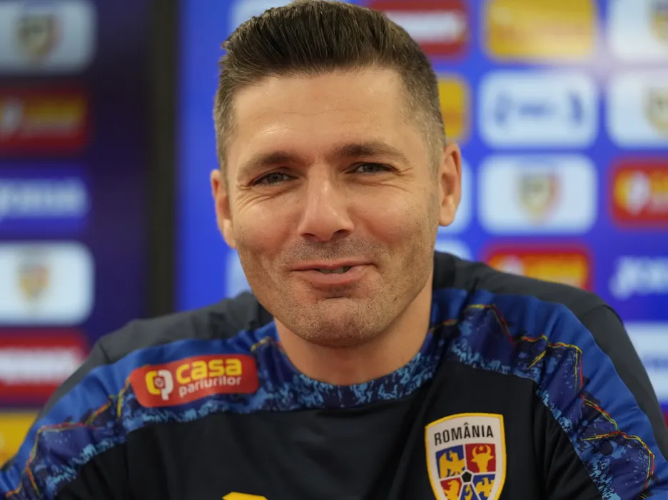 Costin Curelea la conferinta de presa de dinaintea meciului amical impotriva Serbiei U21, desfasurata la Stadionul Francisc Neuman din Arad, joi 9 octombrie 2025. © FOTO:Alexandra Fechete/SPORT PICTURES