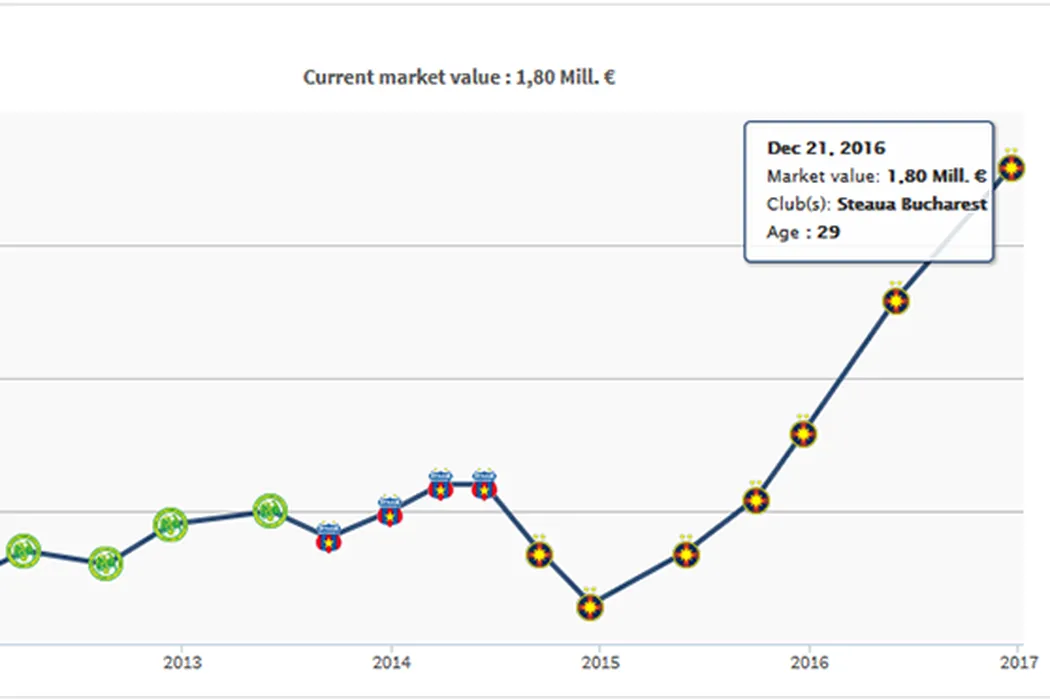 Cota unui jucător de la FCSB pur și simplu a explodat în ultimul an. Doar Denis Alibec este mai valoros decât el