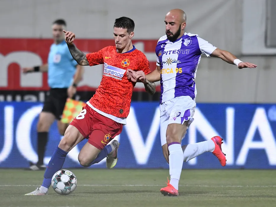 Dennis Man si Daniel Marius Serbanica in meciul de fotbal dintre FCSB si FC Arges, contand pentru Liga 1 Casa Pariurilor, desfasurat fara spectatori pe Stadionul Marin Anastasovici din Giurgiu, duminica 20 septembrie 2020. © FOTO:Razvan Pasarica/SPORT PICTURES
