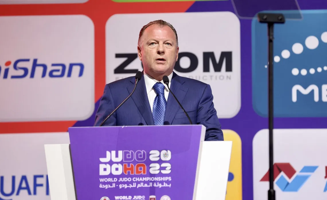 DOHA, QATAR - MAY 08: President of the International Judo Federation (IJF) Marius Vizer speaks during the opening of the World Judo Championships 2023 at the Ali Bin Hamad al-Attiyah Arena in Doha, Qatar on May 08, 2023. Mohammed Dabbous / Anadolu Agency/ABACAPRESS.COM,Image: 774615993, License: Rights-managed, Restrictions: , Model Release: no