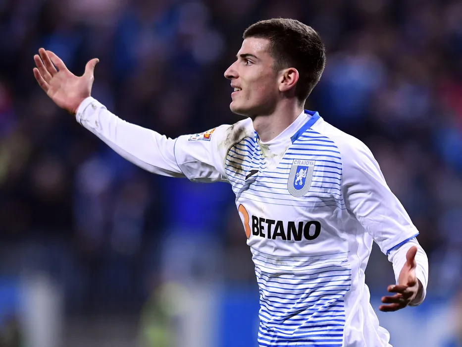 Valentin Mihaila se bucura dupa un gol marcat in meciul de fotbal dintre Universitatea Craiova si Gaz Metan Medias, contand pentru Liga 1 Casa Pariurilor, disputat pe Stadionul Ion Oblemenco din Craiova, duminica 1 martie 2020. © FOTO:Razvan Pasarica/SPORT PICTURES