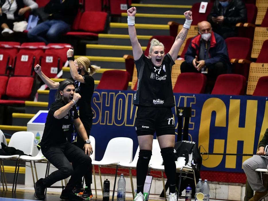 Crina Pintea se bucura in meciul de handbal feminin dintre CSM Bucuresti si Rostov Don Handball, contand pentru Liga Campionilor, desfasurat fara spectatori in Sala Ion Kunst Ghermanescu-Polivalenta din Bucuresti, joi 19 noiembrie 2020. © FOTO:Razvan Pasarica/SPORT PICTURES