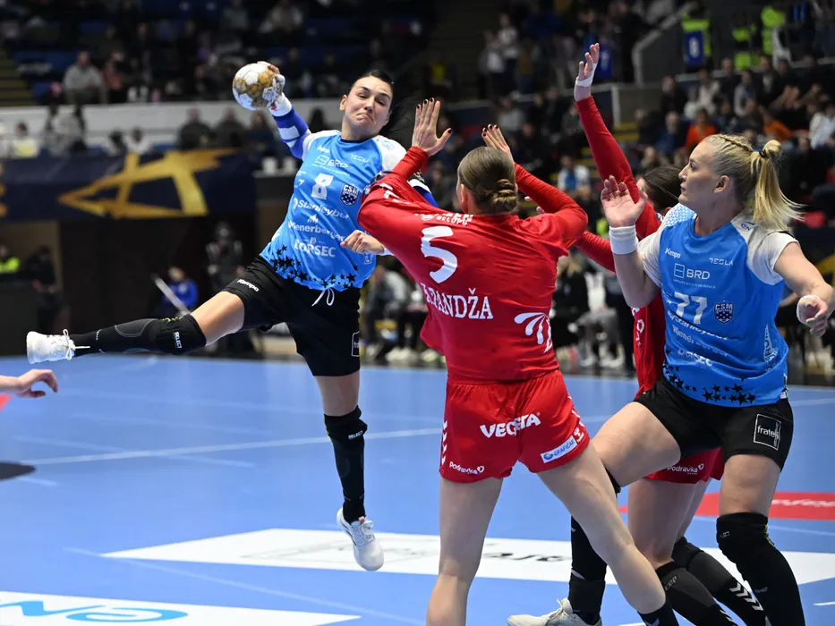 Cristina Georgiana Neagu si Crina Elena Pintea in meciul de handbal feminin dintre CSM Bucuresti si HC Podravka Vegeta, contand pentru Liga Campionilor, desfasurat in Sala Polivalenta-Ioan Kunst Ghermanescu din Bucuresti, duminica 9 februarie 2025. © FOTO:Razvan Pasarica/SPORT PICTURES