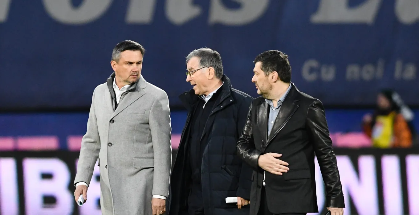 Cristian Balaj (S) si Valeriu Argaseala (C) discuta inainte de inceperea meciului de fotbal dintre echipele CFR Cluj si FCSB, din etapa a 5-a a play-off-ului Ligii 1, disputat pe stadionul Dr. Constantin Radulescu din Cluj-Napoca, duminica, 17 aprilie 2022. FLAVIU BUBOI / MEDIAFAX FOTO