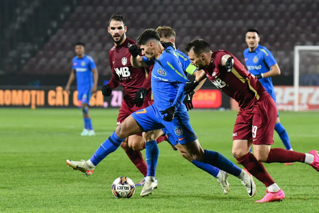 Florinel Teodor Coman, Panagiotis Tachtsidis și Vasile Mogoș în meciul de fotbal dintre FC CFR 1907 Cluj SA si FC Fotbal Club FCSB SA, contând pentru Superliga Superbet, desfășurat pe Stadionul Dr.Constantin Rădulescu din Cluj-Napoca, duminică 10 decembrie 2023. © FOTO: Flaviu BUBOI/SPORT PICTURES
