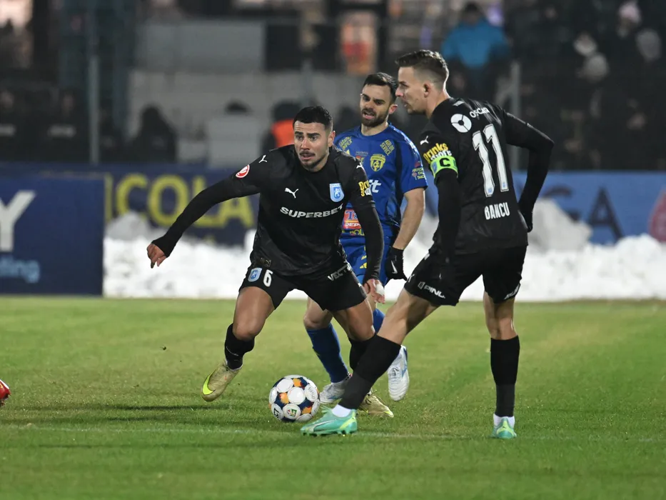 Screciu Vladimir Ionuț, Cristi Marian Barbut si Nicusor Silviu Bancu in meciul dintre Unirea Slobozia si Universitatea Craiova, contand pentru Superliga Superbet, desfasurat pe Stadionul 1 Mai din Slobozia, duminica 22 februarie 2026. © FOTO:Razvan Pasarica/SPORT PICTURES