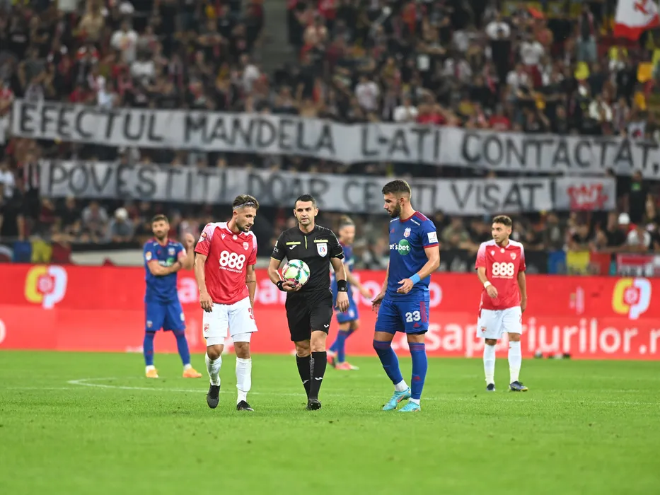 Arbitrul central Iulian Calin alaturi de Nelut Stelian Rosu si Tsvetelin Chunchukov in meciul de fotbal dintre Dinamo Bucuresti si CSA Steaua Bucuresti, contand pentru Liga 2 Casa Pariurilor, desfasurat pe Arena Nationala din Bucuresti, vineri 9 septembrie 2022. © FOTO:Razvan Pasarica/SPORT PICTURES