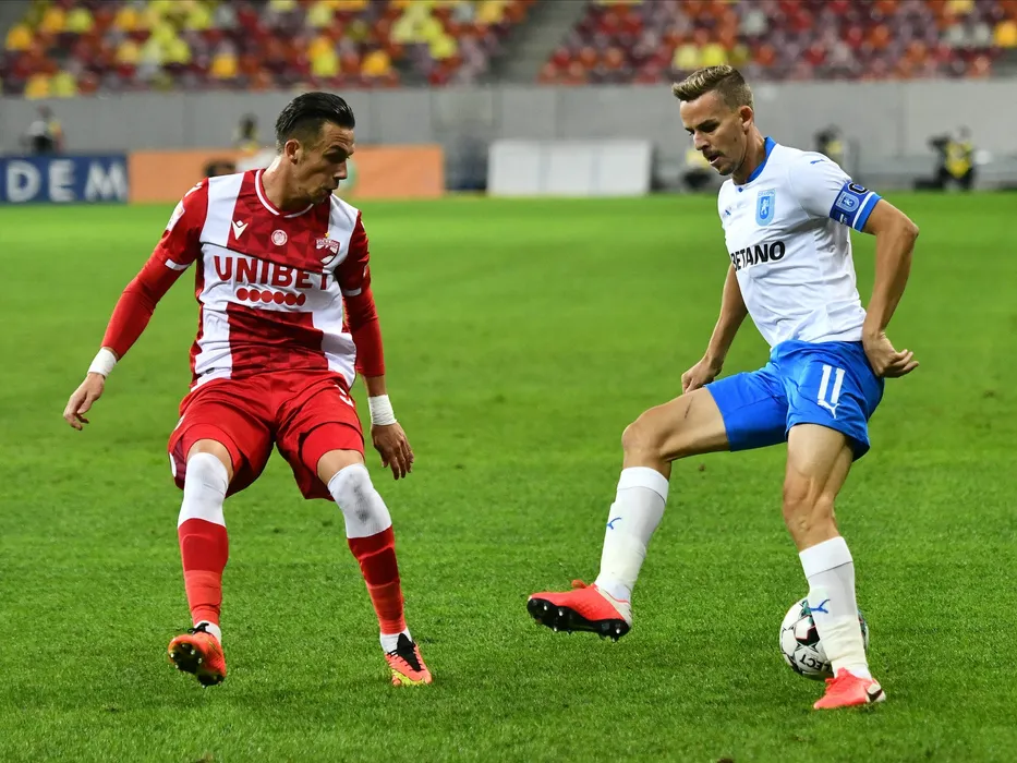 Andreias Mircea Mihaiu si Nicusor Silviu Bancu in meciul de fotbal dintre Dinamo Bucuresti si Universitatea Craiova, contand pentru Liga 1 Casa Pariurilor, desfasurat fara spectatori pe Arena Nationala din Bucuresti, duminica 18 octombrie 2020. © FOTO:Razvan Pasarica/SPORT PICTURES