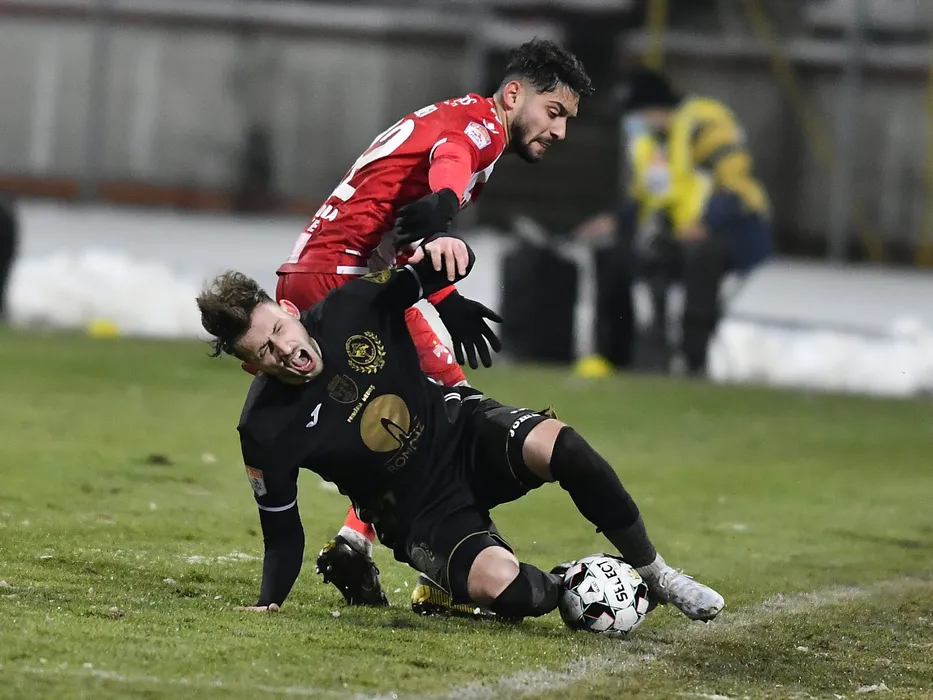 Razvan Alin Trif si Geani Mihai Cretu in meciul de fotbal dintre Dinamo Bucuresti si Gaz Metan Medias, contand pentru Liga 1 Casa Pariurilor, desfasurat fara spectatori pe Stadionul Dinamo din Bucuresti, miercuri 27 ianuarie 2021. © FOTO:Razvan Pasarica/SPORT PICTURES