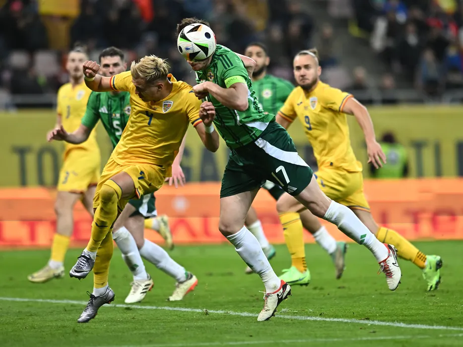 Cristian Manea si Paddy McNair in meciul amical de fotbal dintre Romania si Irlanda de Nord, desfasurat pe Arena Nationala, vineri 22 martie 2024. © FOTO:Razvan Pasarica/SPORT PICTURES