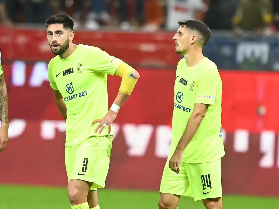 Fotbalistii ieseni Nicolas Samayoa si Julian Augusto Marchioni Garobbio in meciul de fotbal dintre Dinamo Bucuresti si Politehnica Iasi, din cadrul Superligii Superbet, desfasurat pe Arena Nationala din Bucuresti, vineri 27 octombrie 2023. © FOTO:Razvan Pasarica/SPORT PICTURES