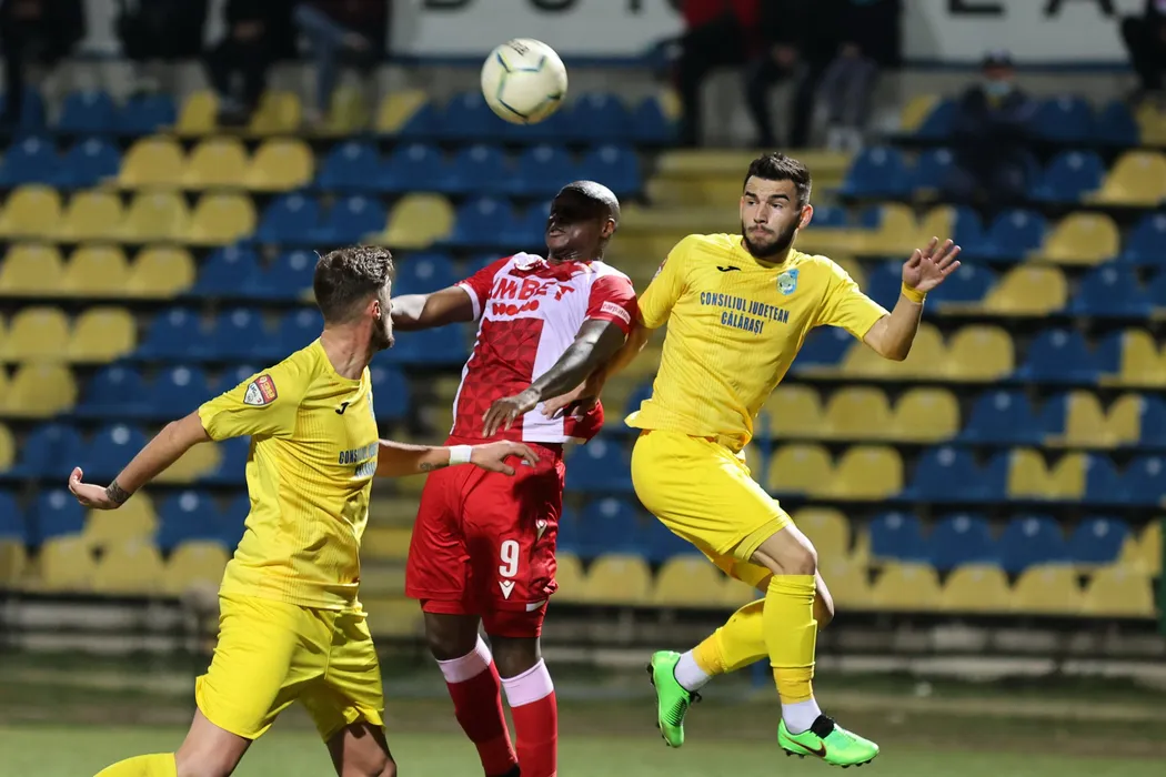 Echipele Dunarea Calarasi si Dinamo Bucuresti (echipament rosu-alb) s-au intalnit intr-o partida disputata in optimile Cupei Romaniei la fotbal, joi 4 martie 2021, la Calarasi. GEORGE FLUSTER / MEDIAFAX FOTO