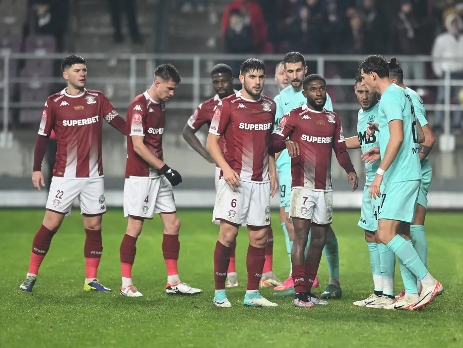 Cristian Ionut Sapunaru, Mattias Kait, Paul Alexandru Iacob, Funsho Ibrahim Bamgboye, Mario Camora (Malico Paulino Mario Jorge) si Matei Christian Ilie in meciul de fotbal dintre Rapid Bucuresti si CFR Cluj, din cadrul Cupei Romaniei Betano, desfasurat pe Superbet Arena-Giulesti din Bucuresti, miercuri 6 decembrie 2023. © FOTO:Razvan Pasarica/SPORT PICTURES