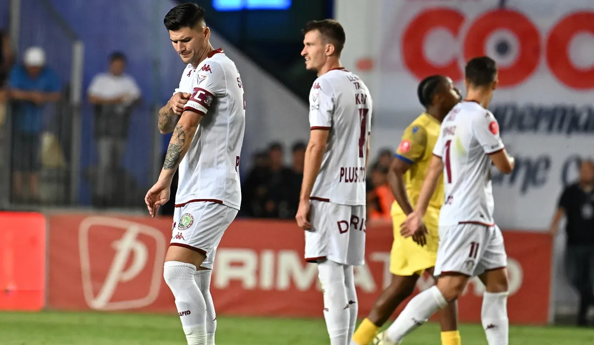 Cristian Ionuț Săpunaru isi aranjeaza banderola de capitan la meciul de fotbal dintre Petrolul Ploiesti si Rapid Bucuresti, din cadrul Superligii Superbet, desfasurat pe Stadionul Ilie Oana din Ploiesti, luni 29 iulie 2024. © FOTO:Razvan Pasarica/SPORT PICTURES
