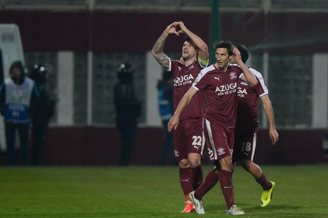 Cristian Sapunaru de la Rapid Bucuresti se bucura dupa marcarea unui gol in meciul cu Petrolul Ploiesti din etapa a XXI-a a Ligii I, disputat in Bucuresti, vineri, 13 martie 2015. DRAGOS SAVU / MEDIAFAX FOTO