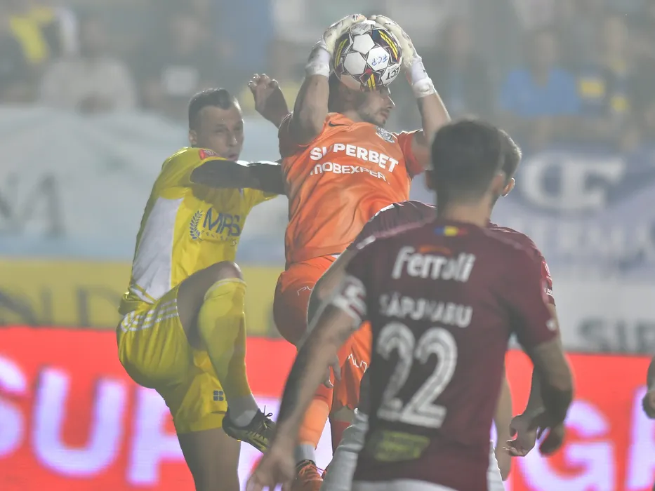 Mirko Ivanovski si Horatiu Alexandru Moldovan in meciul de fotbal dintre Petrolul Ploiesti si Rapid Bucuresti, contand pentru Superliga Superbet, desfasurat pe Stadionul Ilie Oana din Ploiesti, sambata 13 august 2022. © FOTO:Razvan Pasarica/SPORT PICTURES