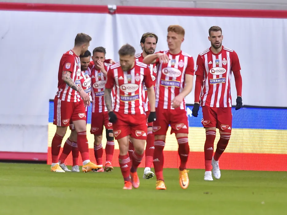 Bucurie a fotbalistilor de la Sepsi dupa un gol marcat cu Cristi Marian Barbut, Marius Stefanescu, Mihai Alexandru Balasa si Alexandru Tudorie in meciul de fotbal dintre Sepsi OSK Sfantu Gheorghe si Universitatea Craiova, contand pentru Cupa Romaniei, desfasurat pe Sepsi Arena din Sfantu Gheorghe, 20 aprilie 2022. © FOTO:Razvan Pasarica/SPORT PICTURES