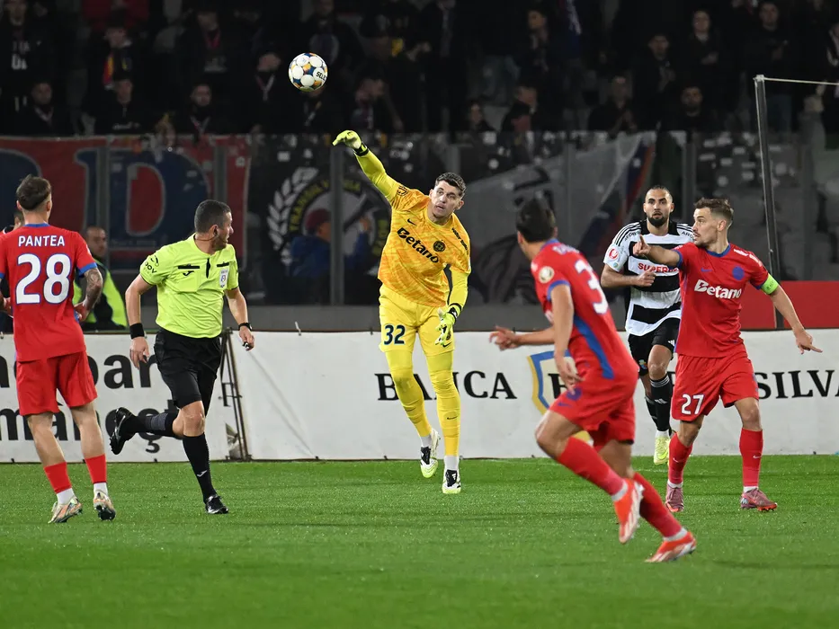 Ștefan Târnovanu, Virgiliu Postolachi si Darius Dumitru Olaru în meciul de fotbal dintre Universitatea Cluj si FCSB, contând pentru Superliga Superbet, desfășurat pe Cluj Arena din Cluj Napoca, sambata 1 noiembrie 2025. © FOTO:Răzvan Pasarica/SPORT PICTURES