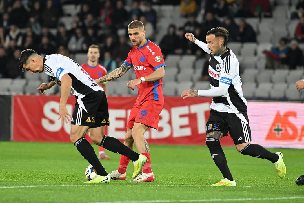 Andrei Viorel Artean, George Daniel Bîrligea si Alessandro Murgia în meciul de fotbal dintre Universitatea Cluj si FCSB, contând pentru Superliga Superbet, desfășurat pe Cluj Arena din Cluj Napoca, sambata 1 noiembrie 2025. © FOTO:Răzvan Pasarica/SPORT PICTURES
