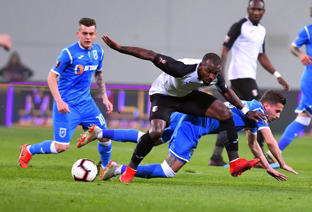 Alexandru Cicaldau,Romario Pires si Stephan Draghici in meciul de fotbal dintre Universitatea Craiova si Astra Giurgiu, contand pentru Liga 1 Betano, desfasurat pe Stadionul Ion Oblemenco din Craiova, duminica 10 martie 2019. © FOTO Razvan Pasarica/SPORT PICTURES
