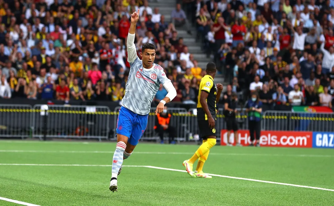 Cristiano Ronaldo of Manchester United celebrates scoring a goal to make the score 0-1 Young Boys v Manchester United, UEFA Champions League, Group F, Football, Wankdorf Stadium, Bern, Switzerland - 14 Sep 2021,Image: 632133229, License: Rights-managed, Restrictions: EDITORIAL USE ONLY No use with unauthorised audio, video, data, fixture lists, club/league logos or "live" services. Online in-match use limited to 120 images, no video emulation. No use in betting, games or single club/league/player publications., Model Release: no, Credit line: Profimedia