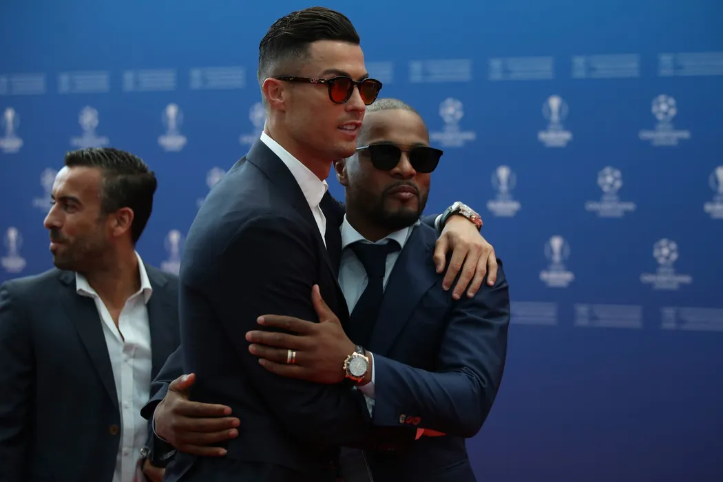 Juventus' soccer player Cristiano Ronaldo, left, and French former soccer player Patrice Evra pose for the photographers before the UEFA Champions League group stage draw at the Grimaldi Forum, in Monaco, Thursday, Aug. 29, 2019.,Image: 573827358, License: Rights-managed, Restrictions: This content is intended for editorial use only. For other uses, additional clearances may be required., Model Release: no, Pictured: Cristiano Ronaldo,Patrice Evra