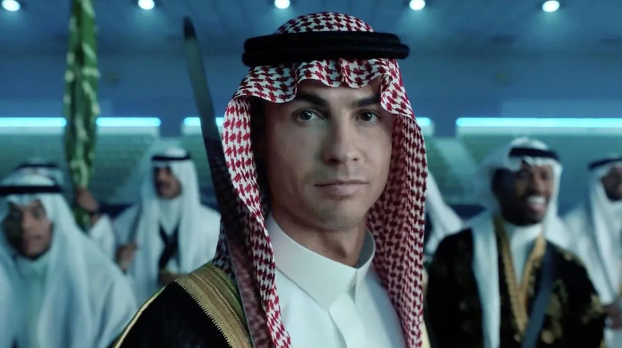 na, SAUDI ARABIA - Portuguese legend Cristiano Ronaldo holds a sword and wears traditional Saudi clothing ahead of Saudi National Day with his club team Al-Nassr ---------
