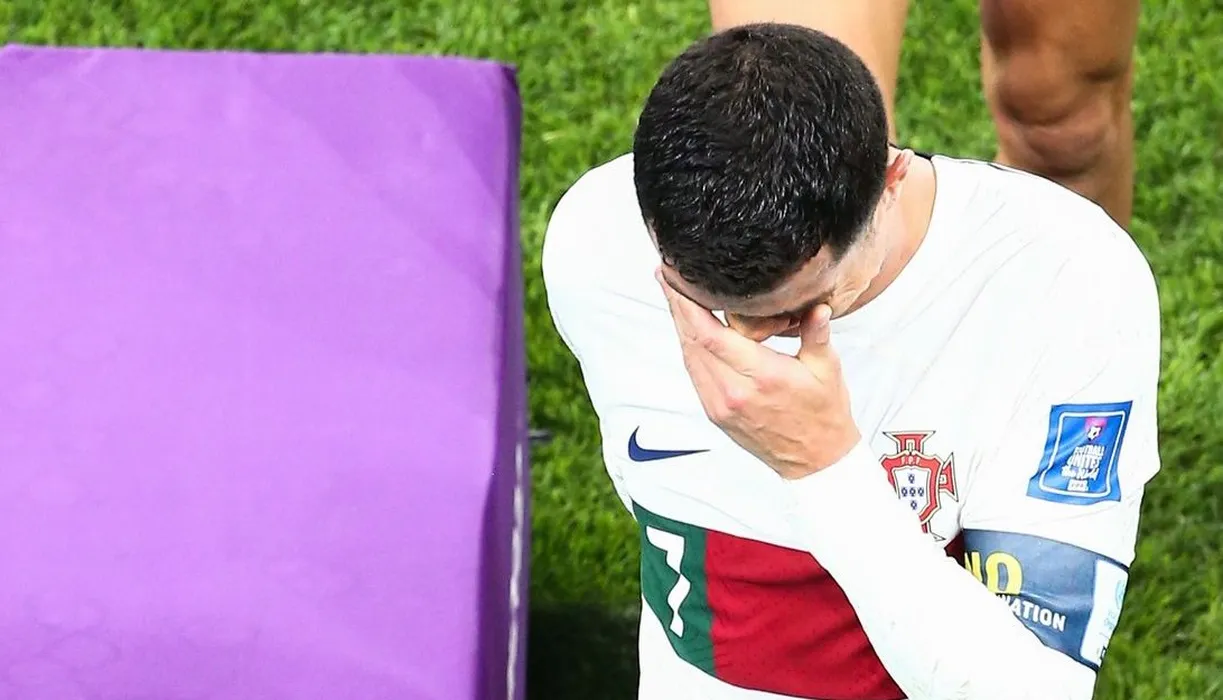 Cristiano Ronaldo of Portugal exits the World Cup in tears as he leaves the field in tears at the end of the game Morocco v Portugal, FIFA World Cup 2022, Quarter Final, Football, Al Thumama Stadium, Doha, Qatar - 10 Dec 2022,Image: 743791175, License: Rights-managed, Restrictions: Editorial Use Only, Model Release: no
