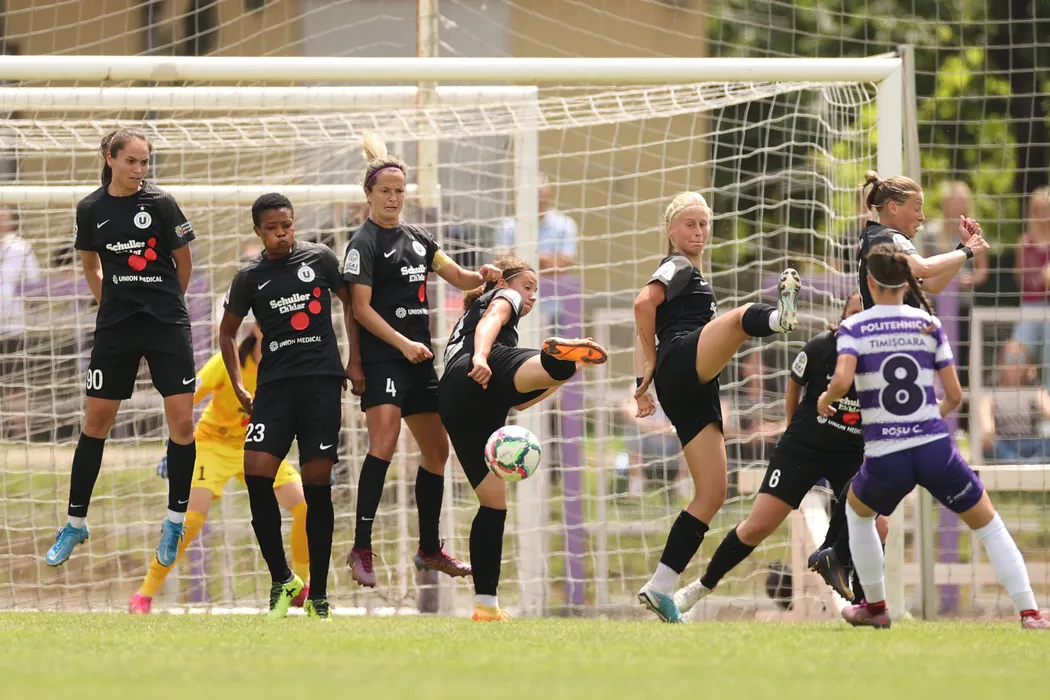 Meciul de fotbal feminin dintre Politehnica Timisoarai si U Olimpia Cluj, contand pentru Play-off-ul Ligii 1, desfasurat pe stadionul Stiinta din Timisoara, sambata 28 mai 2023. © FOTO:Sebastian Tataru/SPORT PICTURES