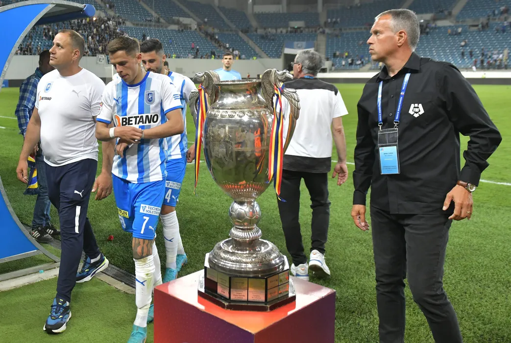 Alexandru George Cimpanu alaturi de trofeu dupa meciul de fotbal dintre Universitatea Craiova si Sepsi OSK Sfantu Gheorghe, contand pentru Cupa Romaniei, desfasurat pe Stadionul Ion Oblemenco din Craiova, joi 12 mai 2022. © FOTO:Razvan Pasarica/SPORT PICTURES
