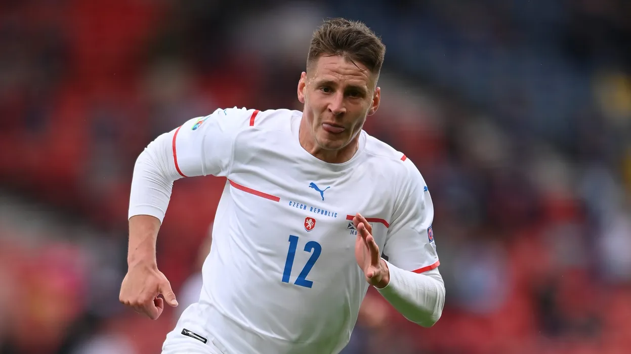Czech Republic's Lukas Masopust in action during the Euro 2020 soccer championship group D match against Scotland, at Hampden Park, in Glasgow, Scotland, Monday, June 14, 2021. (Stu Forster, Pool via AP)