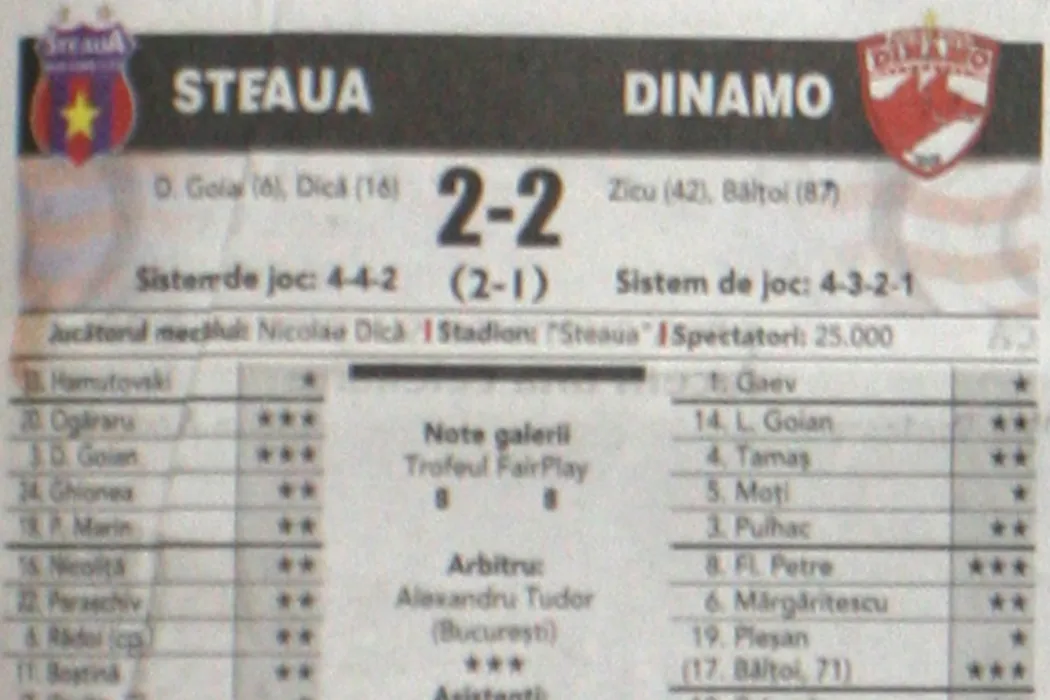 Cronică meci Steaua-Dinamo 2-2: „Doamne, ce meci!”