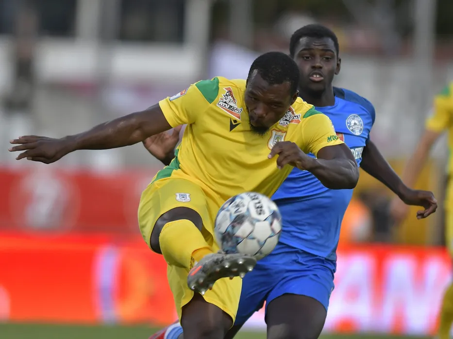 Moussa Sanoh si Rick Ruben Goma Steven in meciul de fotbal dintre Academica Clinceni si CS Mioveni, contand pentru Liga 1 Casa Pariurilor, desfasurat pe Stadionul Dinamo din Bucuresti, luni 30 august 2021. © FOTO:Razvan Pasarica/SPORT PICTURES