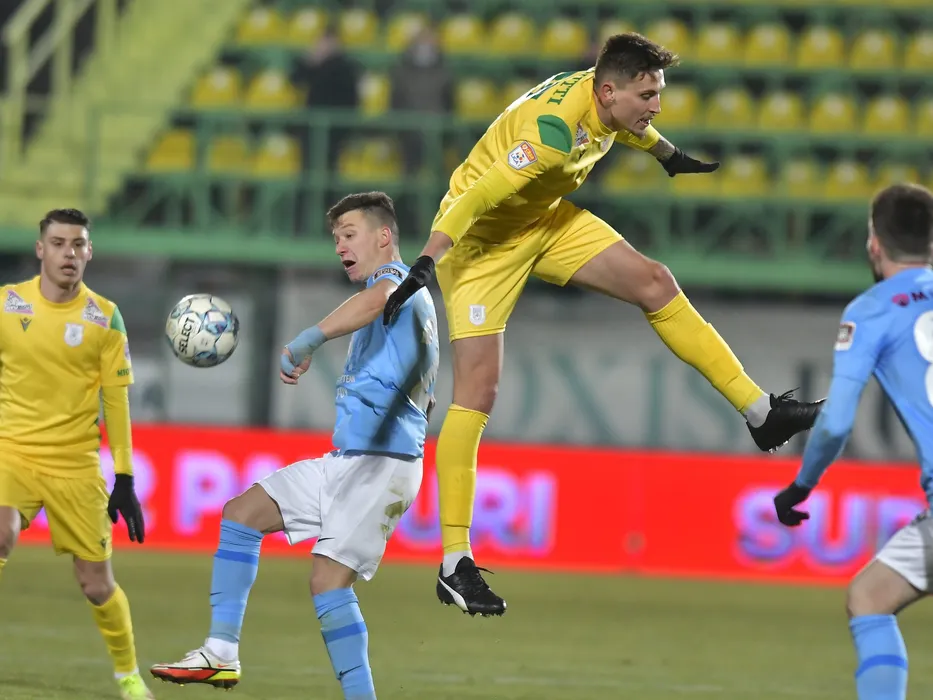 Vadim Rata si Guilherme Gomes Garutti in meciul de fotbal dintre CS Mioveni si FC Voluntari, contand pentru Liga 1 Casa Pariurilor, desfasurat pe Stadionul Orasenesc din Mioveni, vineri 4 februarie 2022. © FOTO:Razvan Pasarica/SPORT PICTURES