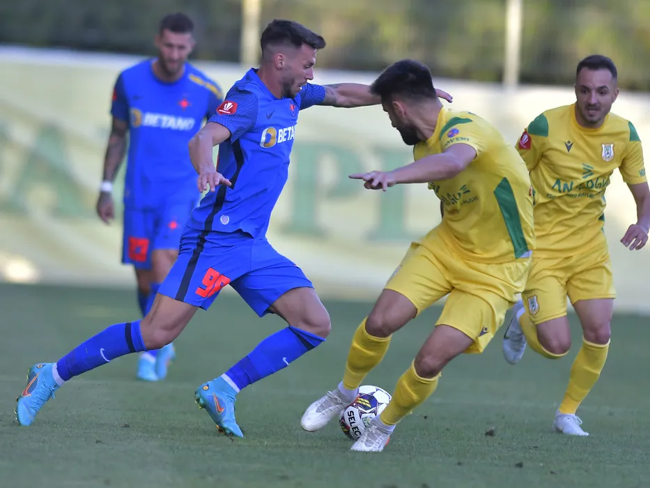 Andrei Ioan Cordea, Ionut Georgian Burnea si Laurentiu Ionut Radescu in meciul de fotbal dintre CS Mioveni si FCSB, contand pentru Superliga Superbet, desfasurat pe Stadionul Orasenesc din Mioveni, sambata 6 august 2022. © FOTO:Razvan Pasarica/SPORT PICTURES