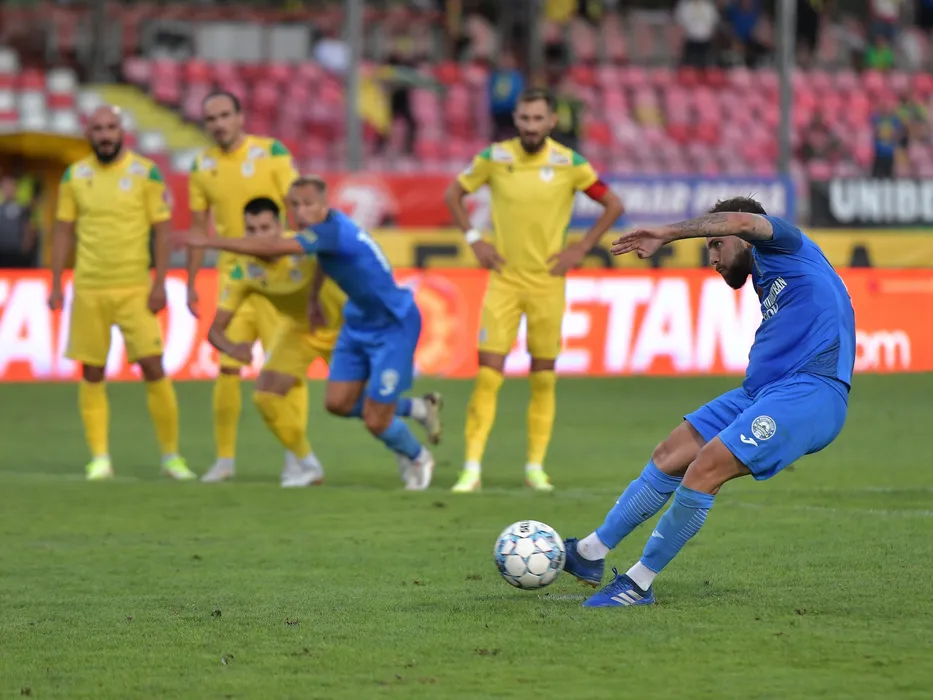 Juan Bautista Cascini rateaza un penalty executat in meciul de fotbal dintre Academica Clinceni si CS Mioveni, contand pentru Liga 1 Casa Pariurilor, desfasurat pe Stadionul Dinamo din Bucuresti, luni 30 august 2021. © FOTO:Razvan Pasarica/SPORT PICTURES