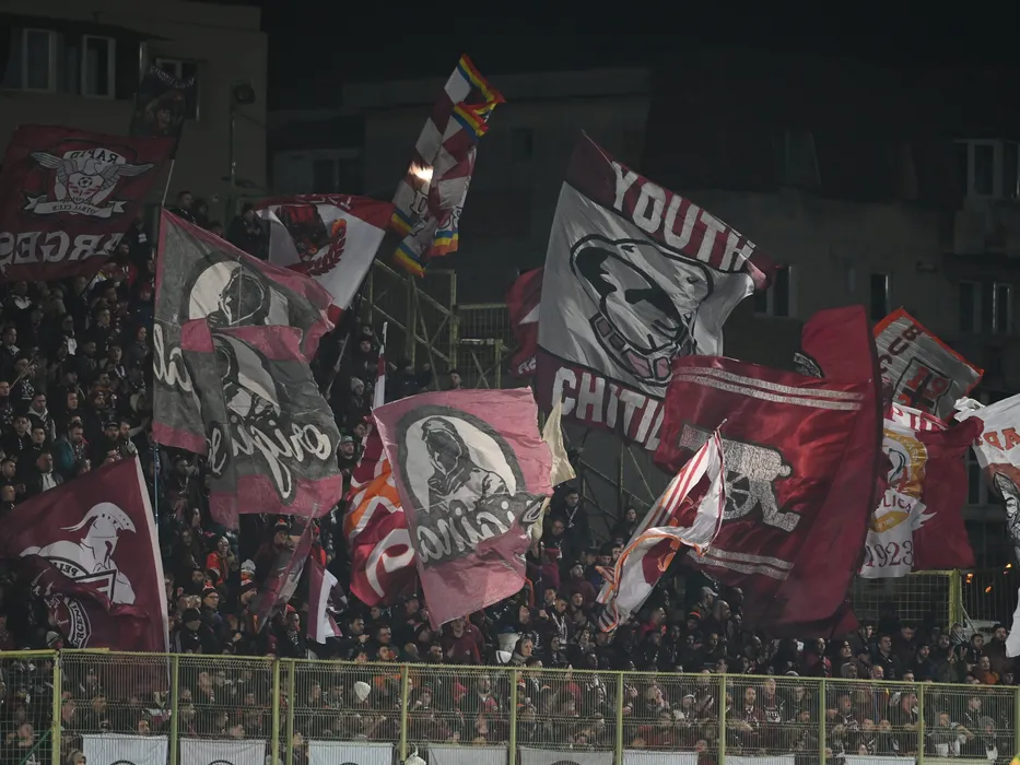 Galeria rapidista prezenta la meciul de fotbal dintre CS Mioveni si Rapid Bucuresti, contand pentru Superliga Superbet, desfasurat pe Stadionul Orasenesc din Mioveni, 17 februarie 2023. © FOTO:Razvan Pasarica/SPORT PICTURES