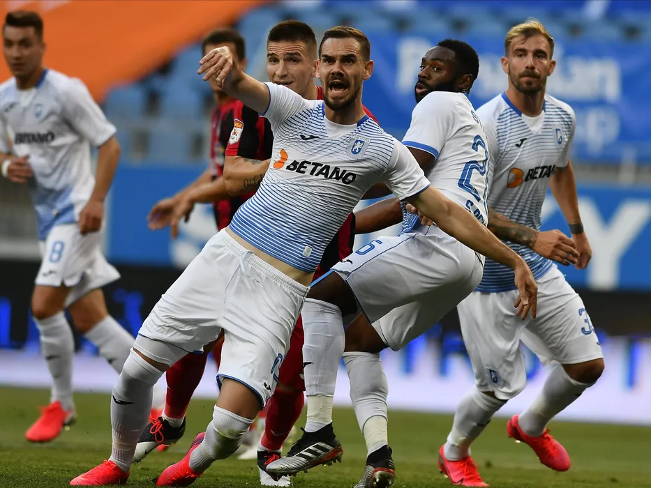 Daniel Graovac, Elvir Koljic si Stephane Acka in meciul de fotbal dintre Universitatea Craiova si Astra Giurgiu, contand pentru play-off-ul Ligii 1 Casa Pariurilor, disputat fara spectatori pe Stadionul Ion Oblemenco din Craiova, vineri 19 iunie 2020. © FOTO:Razvan Pasarica/SPORT PICTURES