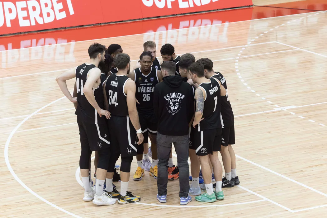 Baschetbaliștii vâlceni în meciul de baschet dintre CS Dinamo București și CS Vâlcea 1924, contând pentru Liga Națională de Baschet Masculin GETICA 95, desfășurat în Sala Dinamo din București, duminică 20 octombrie 2024. © FOTO: Mihai NEACȘU/SPORT PICTURES
