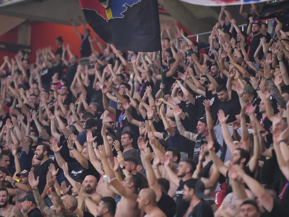 Suporteri stelisti asista la meciul de fotbal dintre Steaua Bucuresti si FK Csikszereda Miercurea Ciuc, contand pentru Liga a-2-a Casa Pariurilor, desfasurat pe Stadionul Steaua-Ghencea din Bucuresti, miercuri 4 august 2021. © FOTO:Razvan Pasarica/SPORT PICTURES