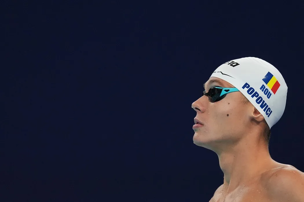 David Popovici from Romania in action at the 2024 Summer Olympics, Tuesday, July 30, 2024, in Paris, France.