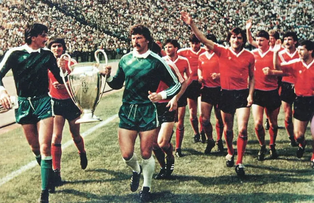 CSA Steaua și FCSB s-au întrecut în urări cu ocazia zilei de 7 mai! Clubul lui Gigi Becali l-a decupat pe Marius Lăcătuș din fotografia cu faimoasa Cupă a Campionilor Europeni