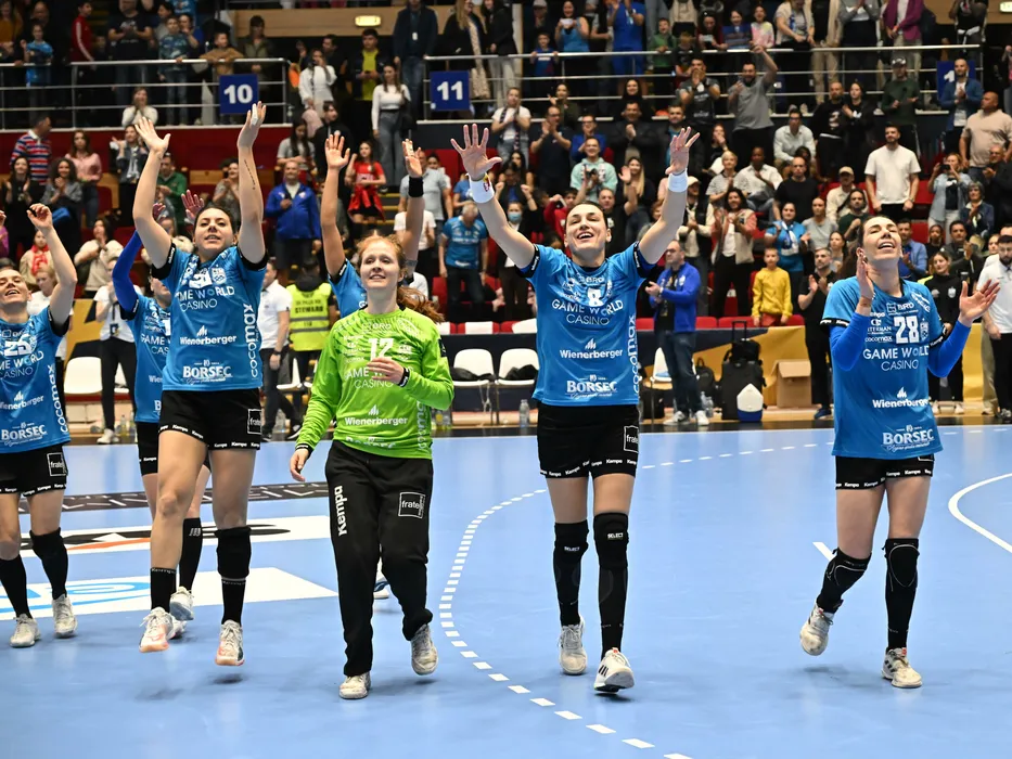 Handbalistele bucurestene Monika Anna Kobylinska, Marie Skurtveit Davidsen, Cristina Georgiana Neagu si Monika Anna Kobylinska saluta publicul dupa meciul de handbal feminin dintre CSM Bucuresti si Krim Mercator Ljubljana, contand pentru Liga Campionilor, desfasurat in Sala Polivalenta-Ioan Kunst Ghermanescu din Bucuresti, duminica 24 martie 2024. © FOTO:Razvan Pasarica/SPORT PICTURES