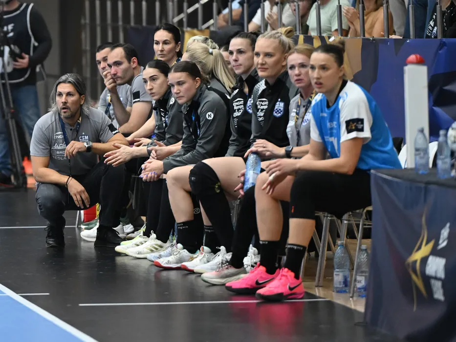 Adrian Vasile reactioneaza pe banca bucuresteana in meciul de handbal feminin dintre CSM Bucuresti si HC Podravka Koprivnica, din cadrul Ligii Campionilor, desfasurat in Sala Dinamo din Bucuresti, duminica 5 octombrie 2025. © FOTO:Razvan Pasarica/SPORT PICTURES