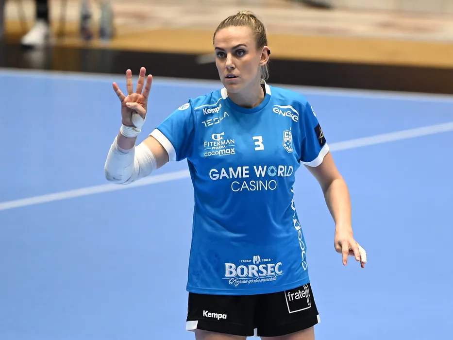 Emilie Hegh Arntzen reactioneaza in meciul de handbal feminin dintre CSM Bucuresti si Gyori Audi Eto KC, contand pentru Liga Campionilor, desfasurat in Sala Polivalenta-Ioan Kunst Ghermanescu din Bucuresti, sambata 23 septembrie 2023. © FOTO:Razvan Pasarica/SPORT PICTURES