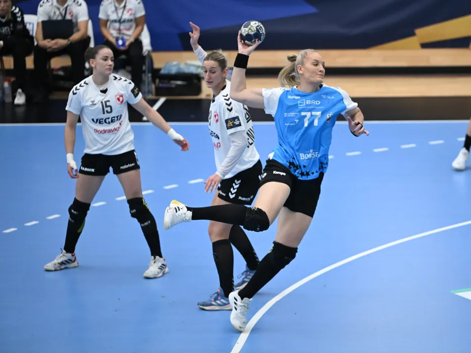 Veronika Babara, Sara Senvald si Crina Elena Pintea in meciul de handbal feminin dintre CSM Bucuresti si HC Podravka Koprivnica, din cadrul Ligii Campionilor, desfasurat in Sala Dinamo din Bucuresti, duminica 5 octombrie 2025. © FOTO:Razvan Pasarica/SPORT PICTURES